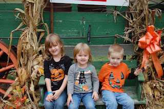 Clara loved playing with the pumpkins. And Hallie kept finding pumpkins she could drag to Jason's feet. We did this pumpkin patch last year and really enjoyed it then. I think it's going to become a staple in our Halloween events because we can pick pumpkins based on price and not have to weigh them. And the people working there are great with the kids.